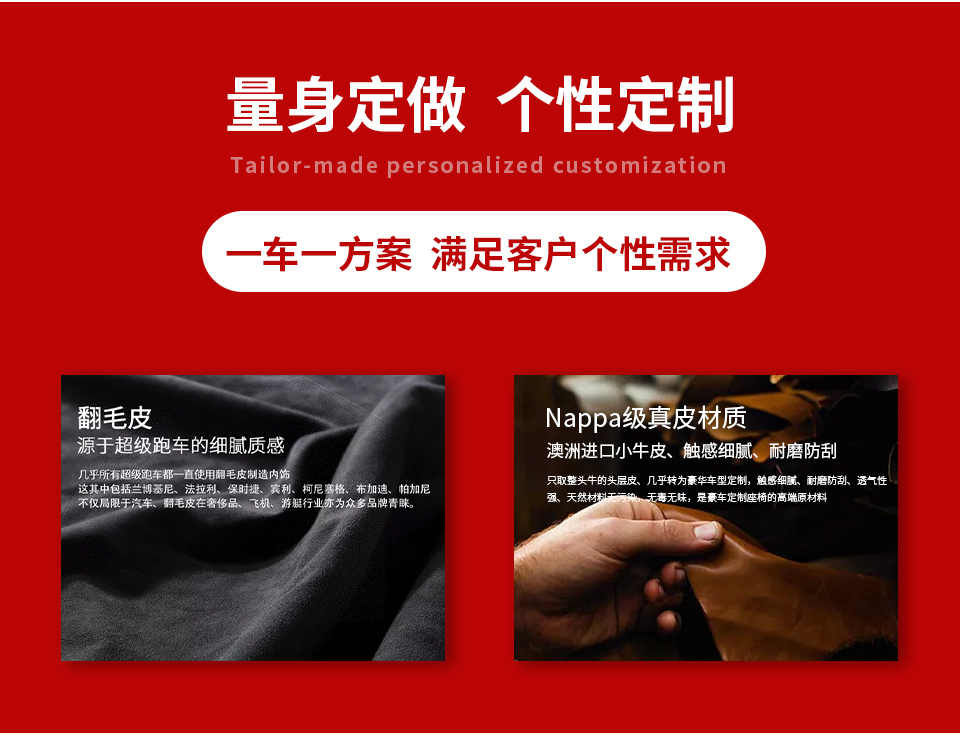 特 點(diǎn): 全車進(jìn)口小牛皮真皮紅黑內(nèi)飾真皮豪華質(zhì)感,可根據(jù)個(gè)性需求定制顏色方案!